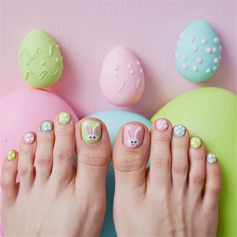 Create a vibrant and cheerful look with rainbow toes. Paint each toenail a different color of the rainbow, from red to orange to purple. You can also add glitter or stickers to enhance the festive look.
