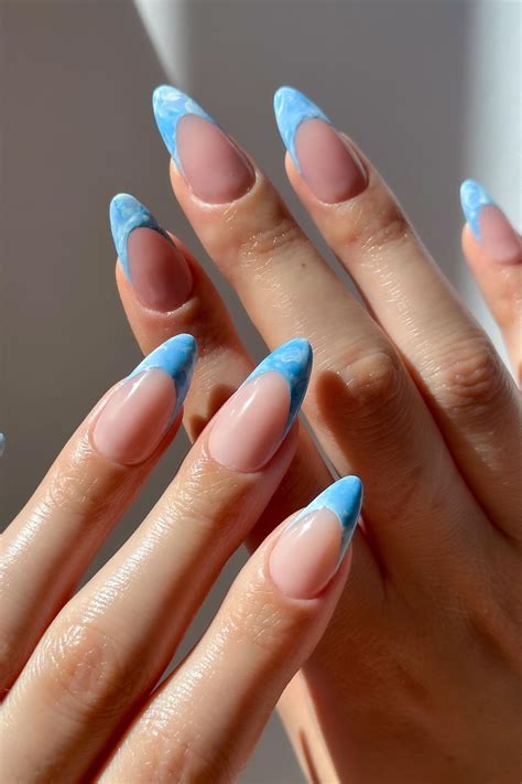 Achieve a sophisticated and ethereal look with a marble effect manicure. Mix two or three nail polish colors in a small bowl and create swirls with a toothpick or a small brush. Transfer the mixture onto your nails and blend the colors gently, creating a marbled pattern. Seal the design with a topcoat for a glossy finish.