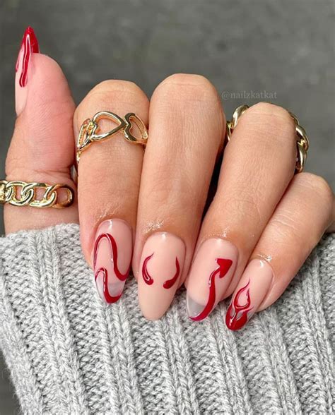 The devil’s flames are an iconic representation of hell and damnation. Incorporate this fiery element into your nail art with hues of red, orange, and yellow. Create gradient flames or freehand draw flickering tongues of fire. For a bolder look, add glitter or holographic powder to mimic the glow of the inferno.
