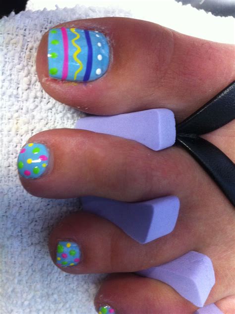 What are some tips for painting Easter egg designs on toes?