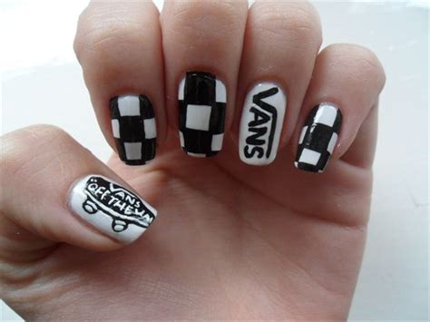 Vans nail designs are nail art inspired by the Vans brand, often incorporating the checkerboard pattern or other Vans elements.